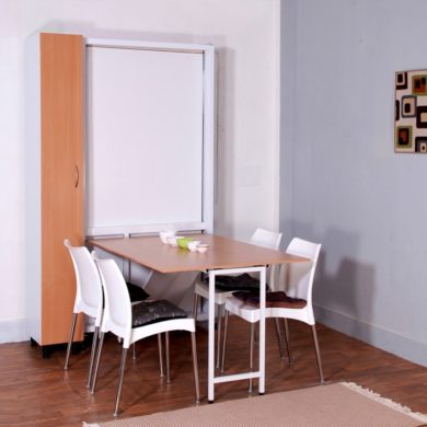 The Closet House,designed by Portuguese company Consexto, is an example of intelligent design around minimal space. The apartment, at 44m², is divided into five zones – two of which are completely flexible and transformable because of an automated sliding cabinet/wall system.Click on thumbnails for larger images: